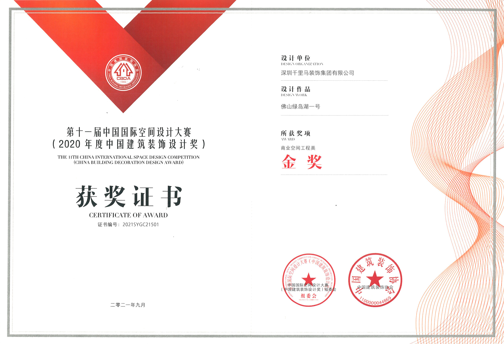 三連冠!千里馬裝飾蟬聯2019-2021中國建筑裝飾設計“金獎”