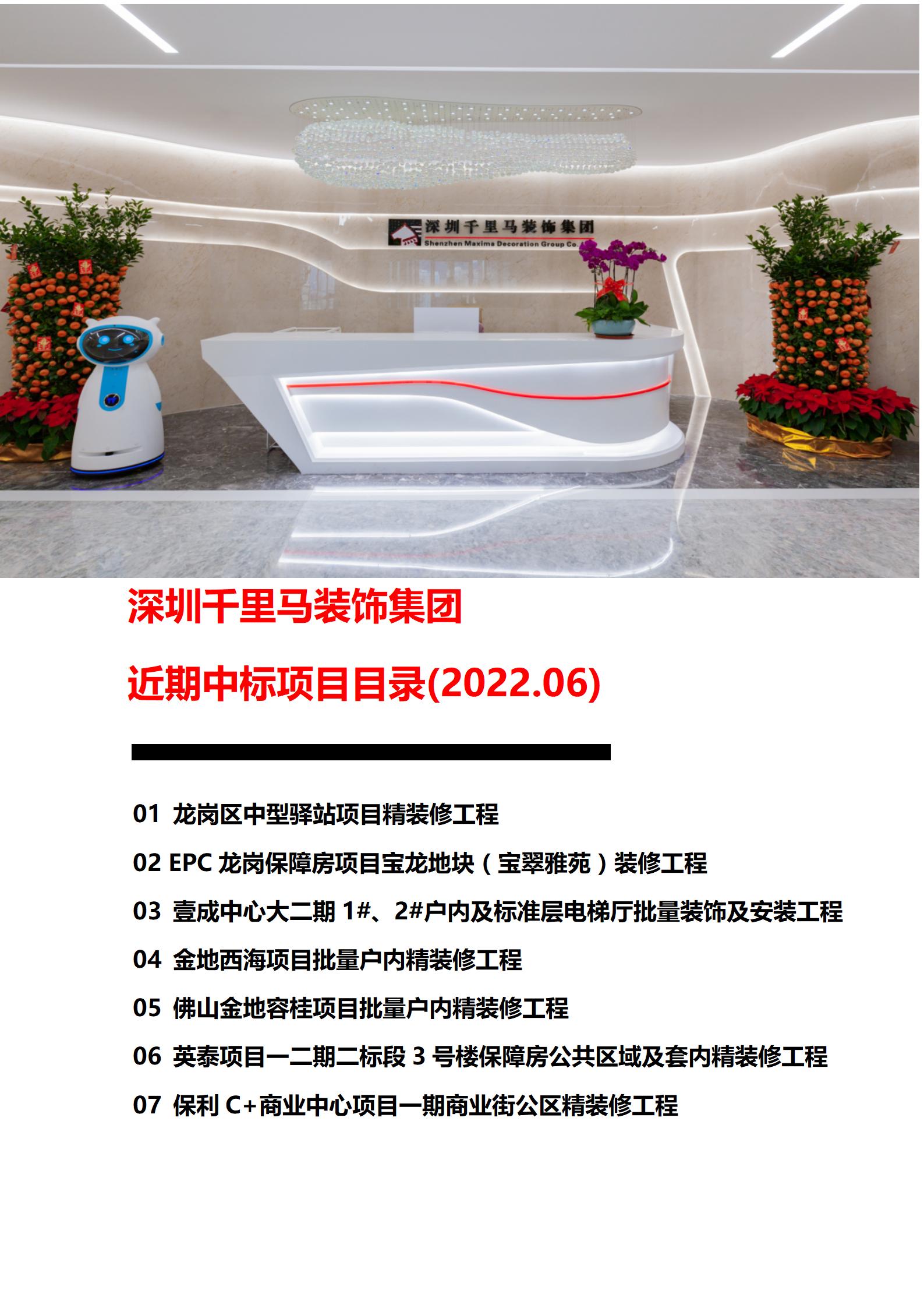 深圳千里馬裝飾集團近期中標項目