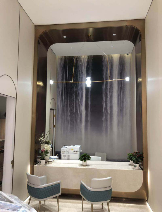 接待臺的水波紋天花,采用的是水波紋不銹鋼。